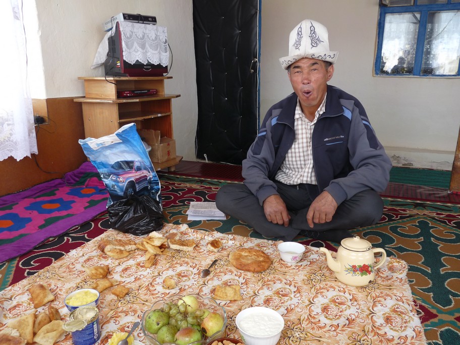 Le conducteur de taxi qui nous a conduit de Khorog jusqu’à la moto avec notre roue réparée nous a invités le jour suivant pour le petit-déjeuner.