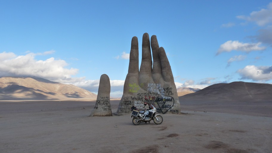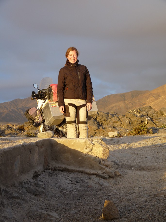 The last 300 km to Antofagasta are harder than expected. We take the paved highway instead of the coast track (which is supposed to be quite bad). It goes through the inland, and climbs quite high, more than 2000 meters. Therefore it is very cold, and it is also very windy.