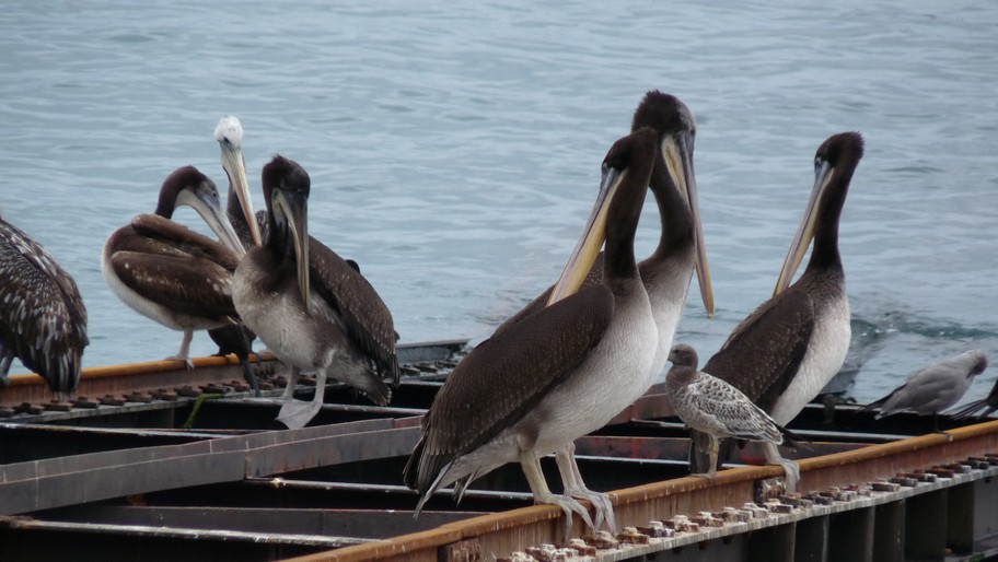 A bit further, many pelicans are on the lookout for fish remains that the fishermen or market sellers give them. They are so alert that our presence does not seem to affect them at all.