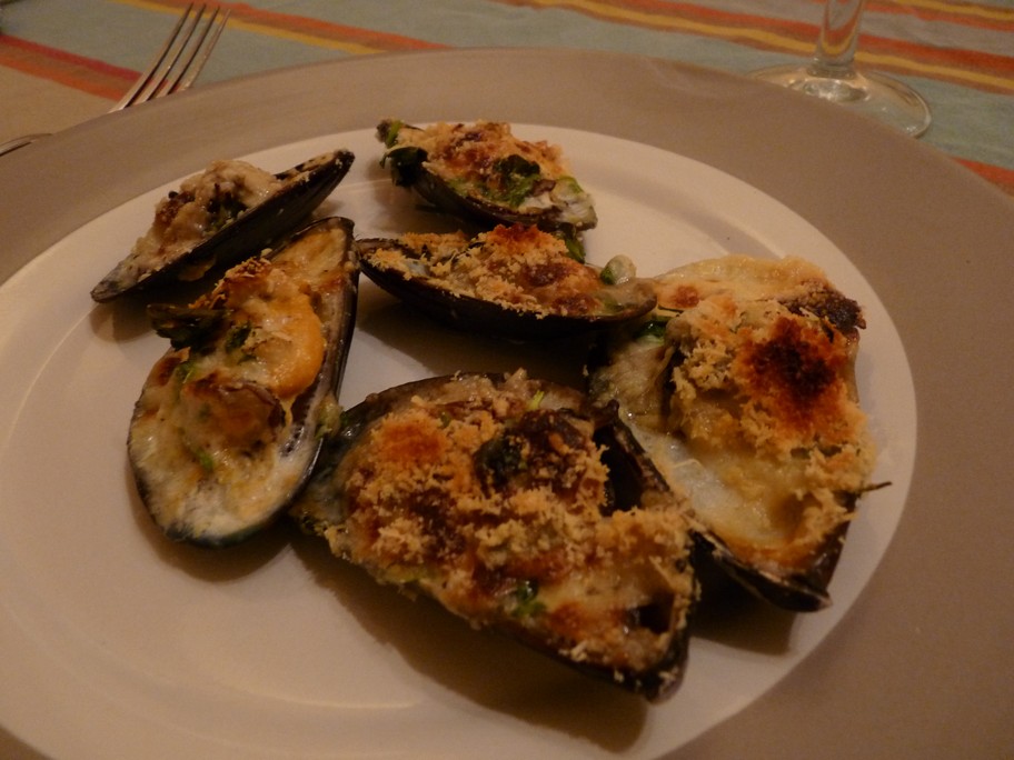 Here the specialty is the seafood, and we enjoy it! In grilled parmesan soup, then in a seafood risotto, it’s delicious.