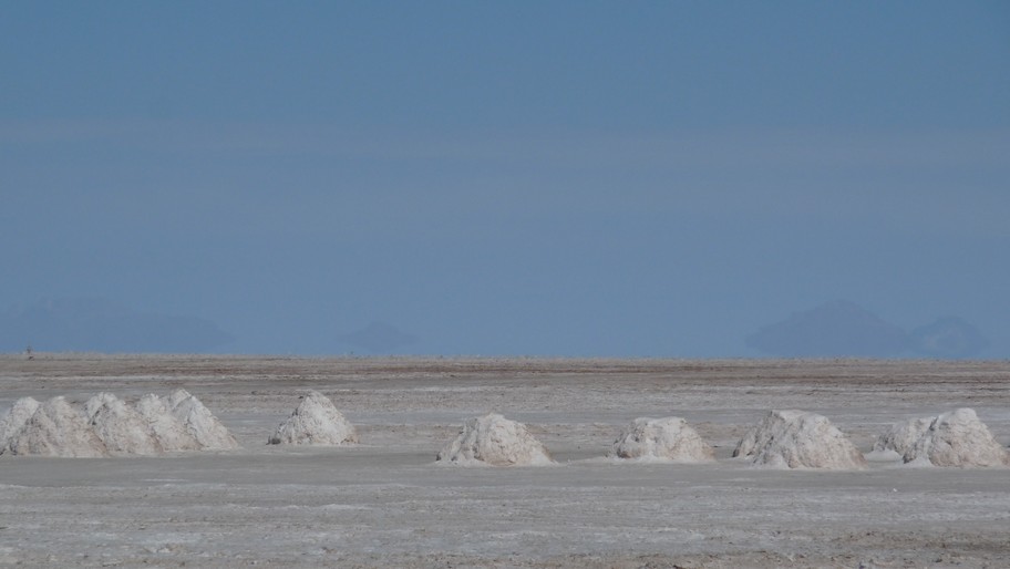 A few kilometers of track further, here we are, at the beginning of the salar!!! Small piles of salt confirm that we are at the right place.