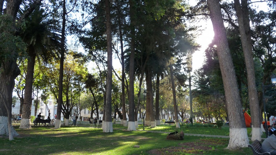In Sucre: below the Simon Bolivar park. How nice to see a green space again!