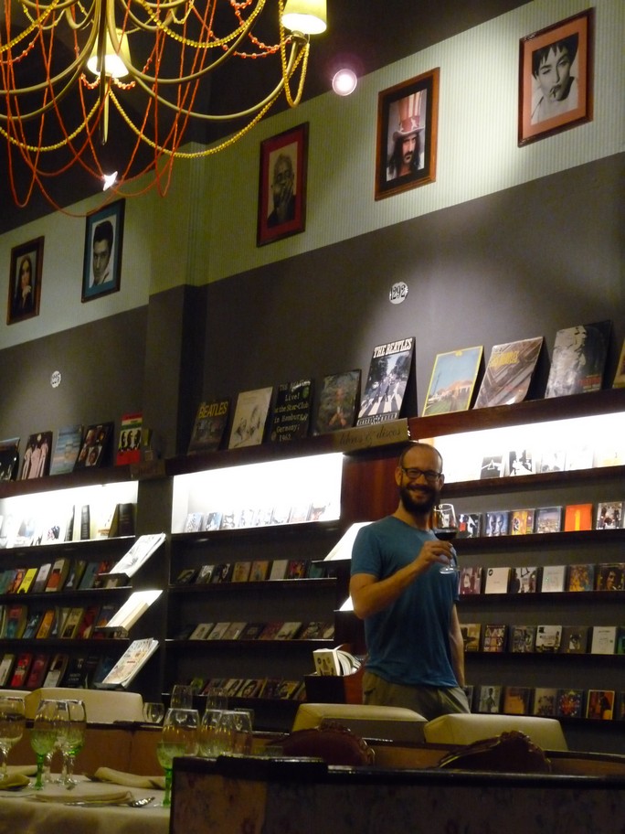 To change a bit we have dinner in a special bobo restaurant in San Juan. Books, vinyls and CD on the walls.