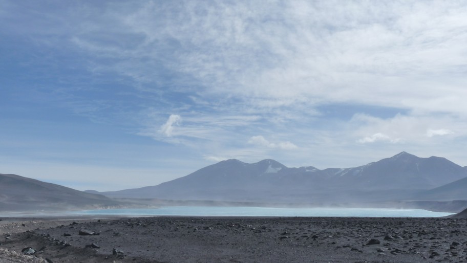 Quelques kilomètres plus tard nous passons à côté de laguna verde. Il y a tellement de vent qu’on pourrait surfer sur les vagues!