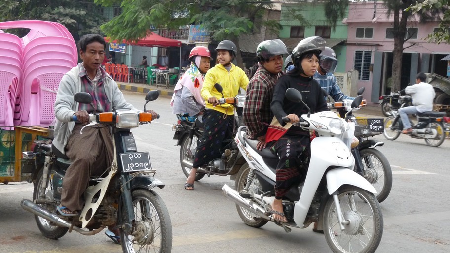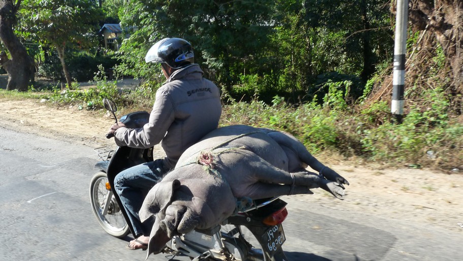 Et avant de vous quitter, une petite anecdote sur les motos birmanes: elles servent vraiment à tout, même au transport de cochon vivant!