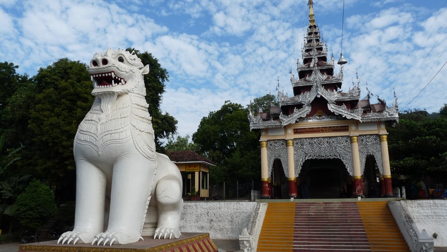 Le lendemain, on commence de bon matin par la visite de Mandalay Hill, guardée par les lions.