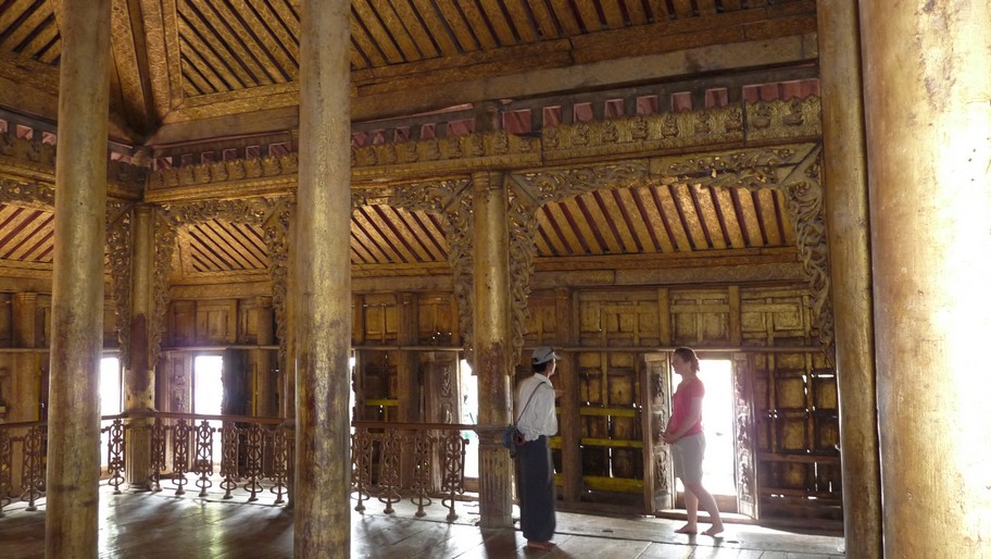 Ensuite: le monastère Schwenandaw, le seul vestige original du palais royal (il a été démonté et remonté en dehors de l’enceinte du palais, ce qui l’a sauvé de la destruction).