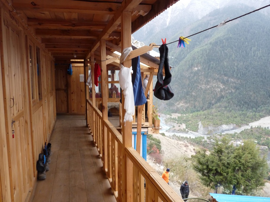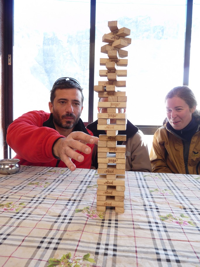 Nous arrivons tôt (10h30) à Thorung Phedi et passons la journée à jouer au Jenga et au Rami avec Tal et Adie, Yves et Stéphane. Nous avons vraiment passé de super moments!