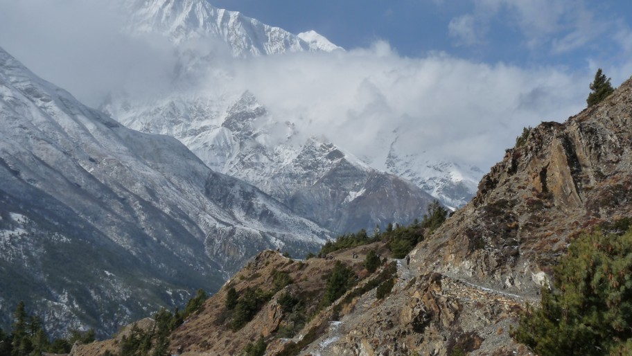 Après nos vacances à Kathmandu et Pokhara nous avions besoin d’exercice. La vue que nous avions sur les Annapurnas depuis notre chambre nous a donné des idées : allons trekker là-bas!