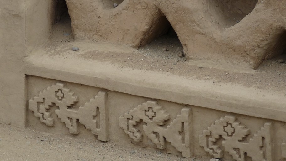 Deuxième visite, la cité de Chan Chan. C’était la capitale de l’empire chimu, une civilisation pré-inca. La partie que nous pouvons visiter est une ode à la mer, il y a partout des sculptures en sable représentant des poissons, des oiseaux maritimes,…